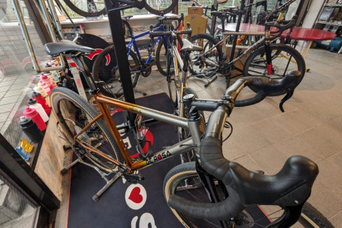 この構造のメリットをさっそくリドレースタッフに聞いてみると、まず第一にはエアロダイナミクスに優れること。それとキャリパーブレーキに比べ可動部分が無いので、スムーズな動きに貢献、またリリースした際には大きくブレーキが開き、ホイール交換が素早くできるという。