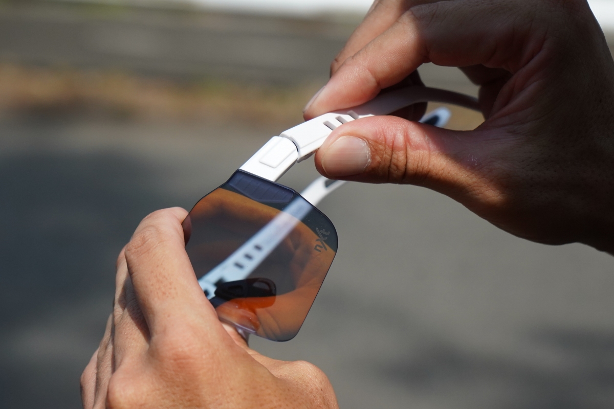 耳の位置に合わせて、テンプルの角度も3段階で調整できる