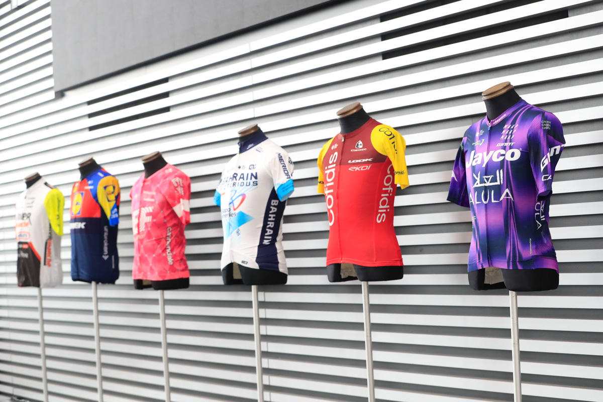 ジャパンカップ2025出場海外ワールドチーム6チームのジャージが並ぶ