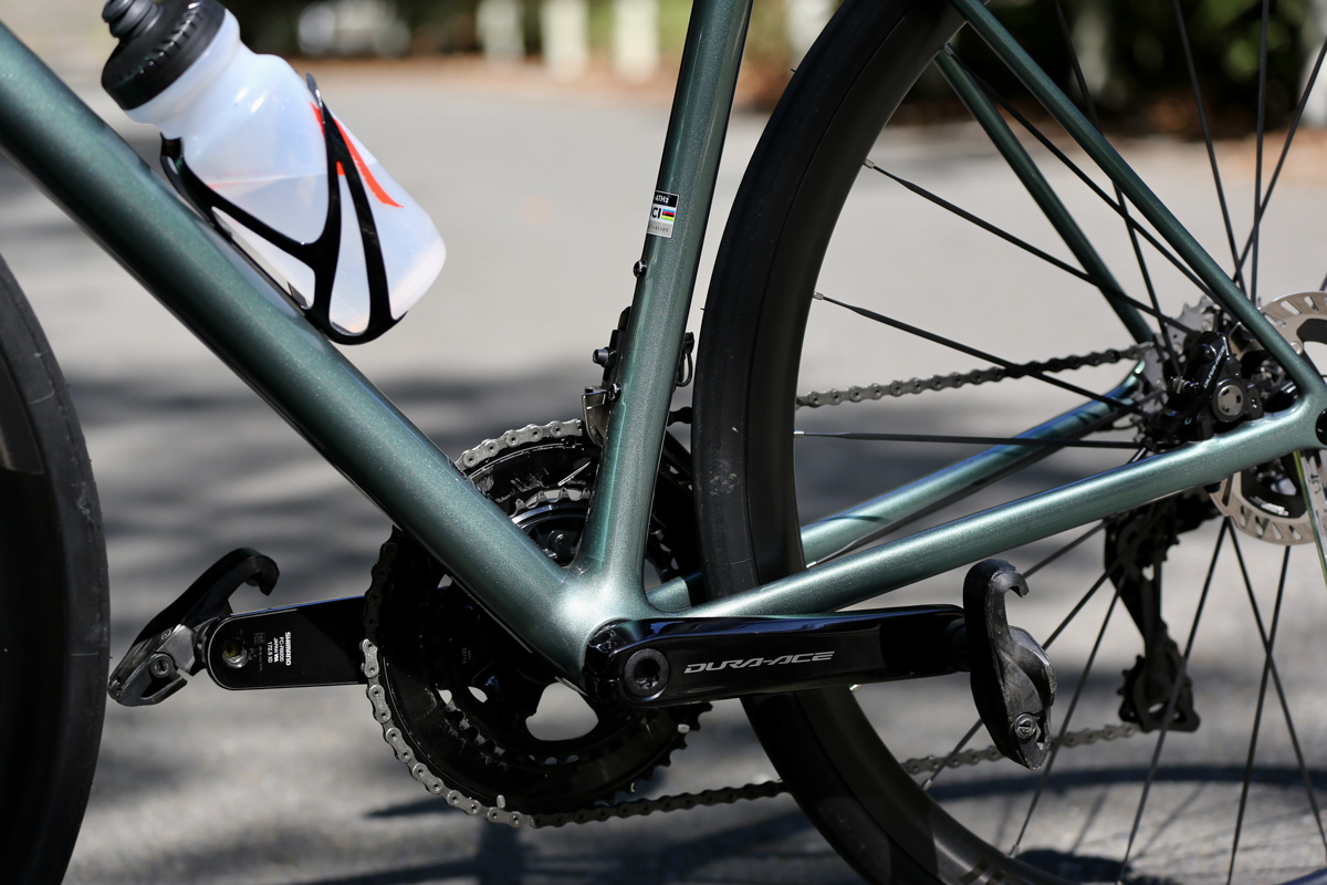 華奢だが、堅牢なボトムブラケット周り。BBハイトは3mm下げられている