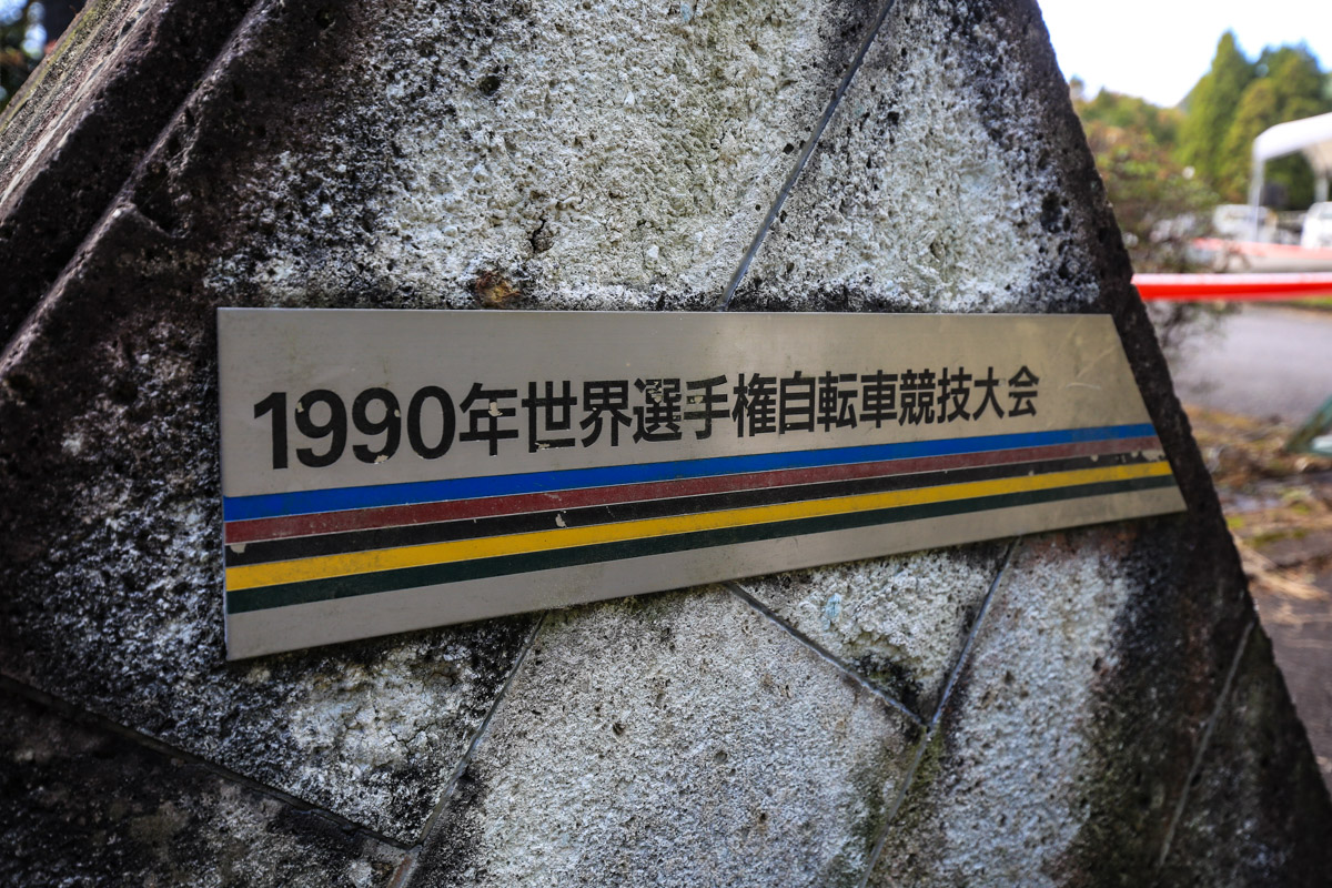 1990年世界選手権の開催を示すアルカンシェル色のプレート