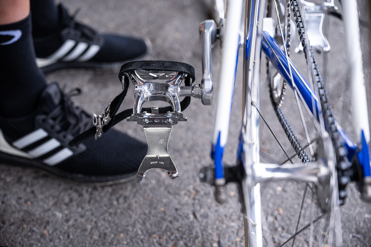 足元はMKS SUPREMEペダルが支える。リアハブが片切りである事も、この写真から分かる