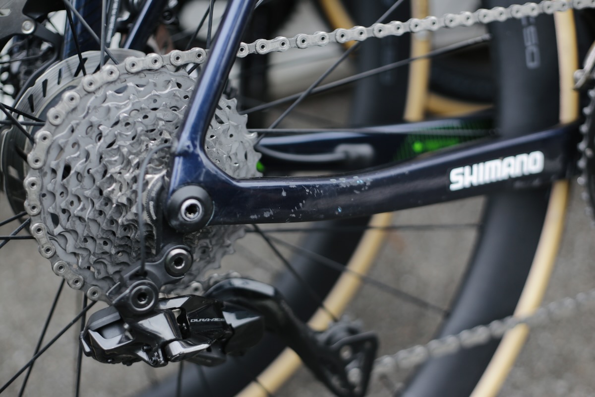 こちらは2シーズン目のバイク。歴戦の傷跡が残る