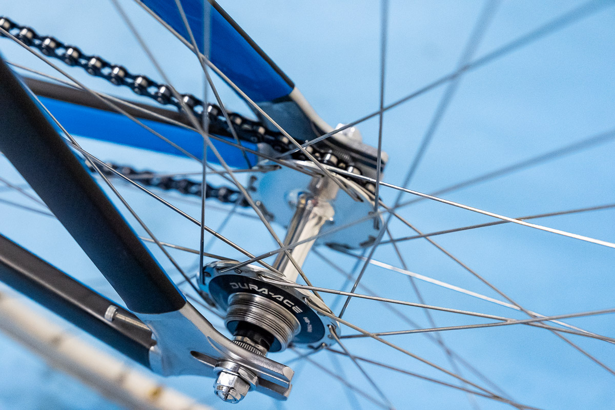 リアスポークは結線せず組まれている。リアハブは両切り