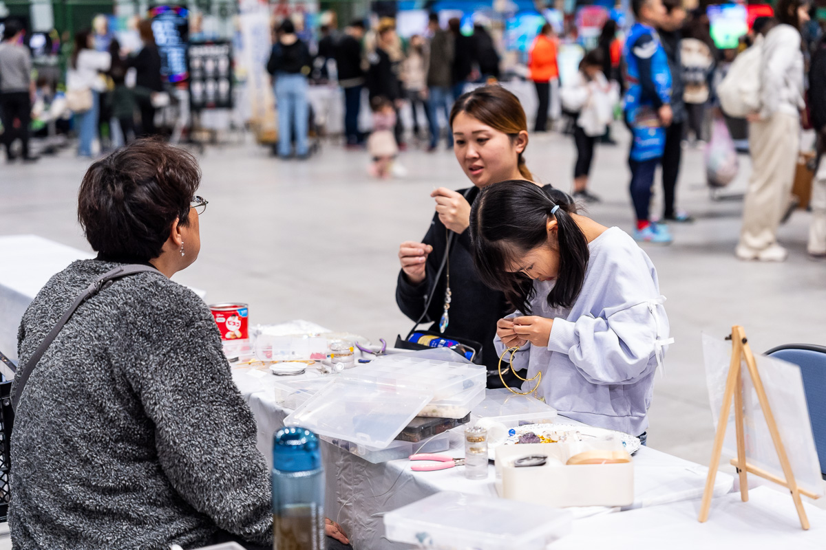 ハンドメイドアクセサリーの制作を楽しむ親子も