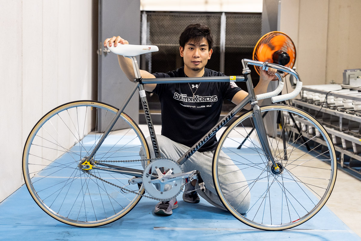 愛車を手に、しゃがみポーズでの撮影にも応じてくれた小原佑太選手(青森)