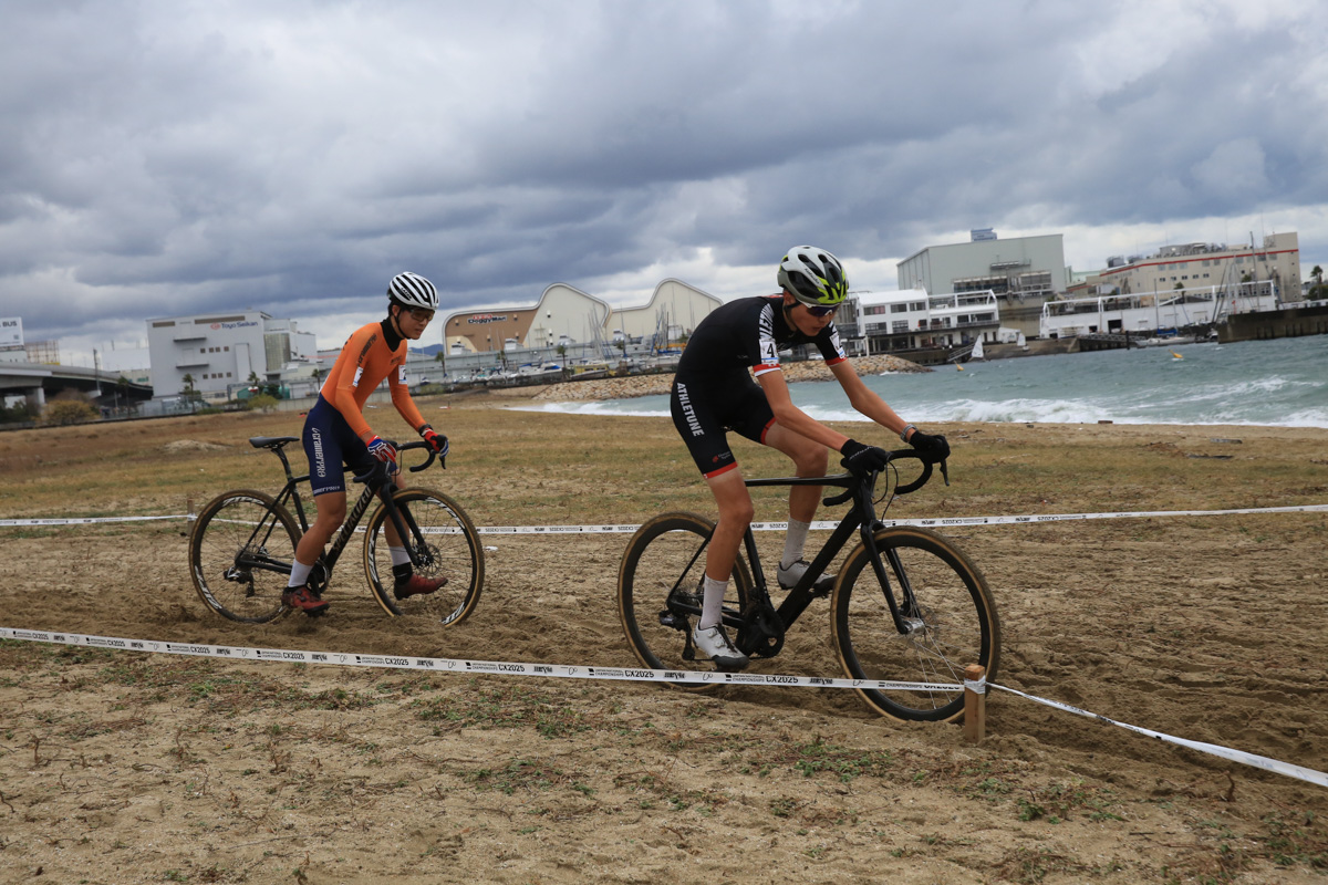 三上将醐(アスリチューン・CORAGGIO KAWANISHI U-19/横浜立野高校)と松村拓弥(群馬工業高等専門学校)が激しく競り合う