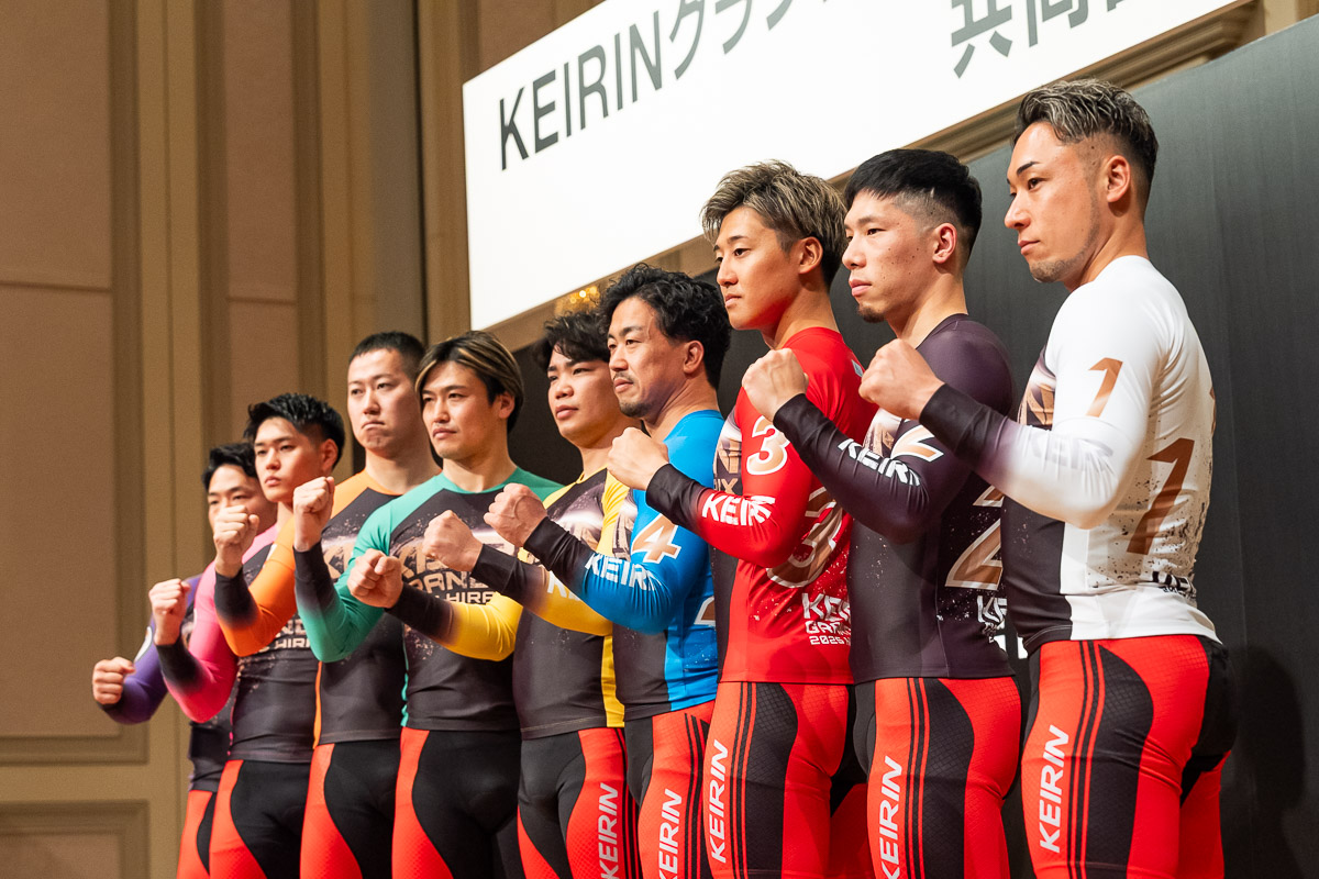 精悍な表情でガッツポーズを決めるKEIRINグランプリ2025出場選手達