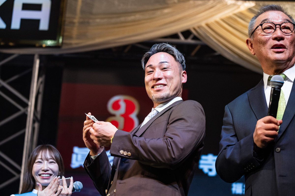 選手がくじを引いたプレゼント抽選コーナーでは、当選した人の喜びの声があちこちから上がった