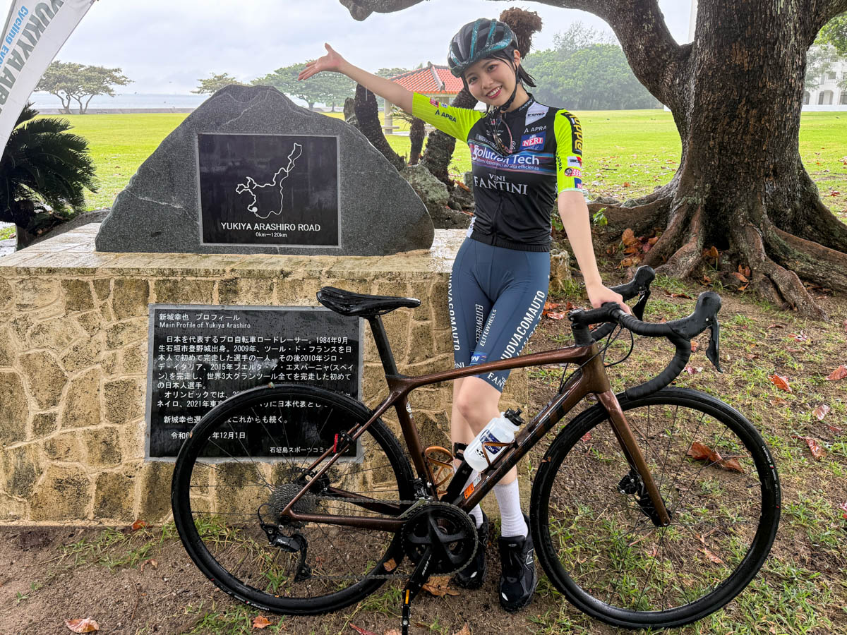 スタート地点の舟蔵公園には新城幸也ロードの記念碑があります