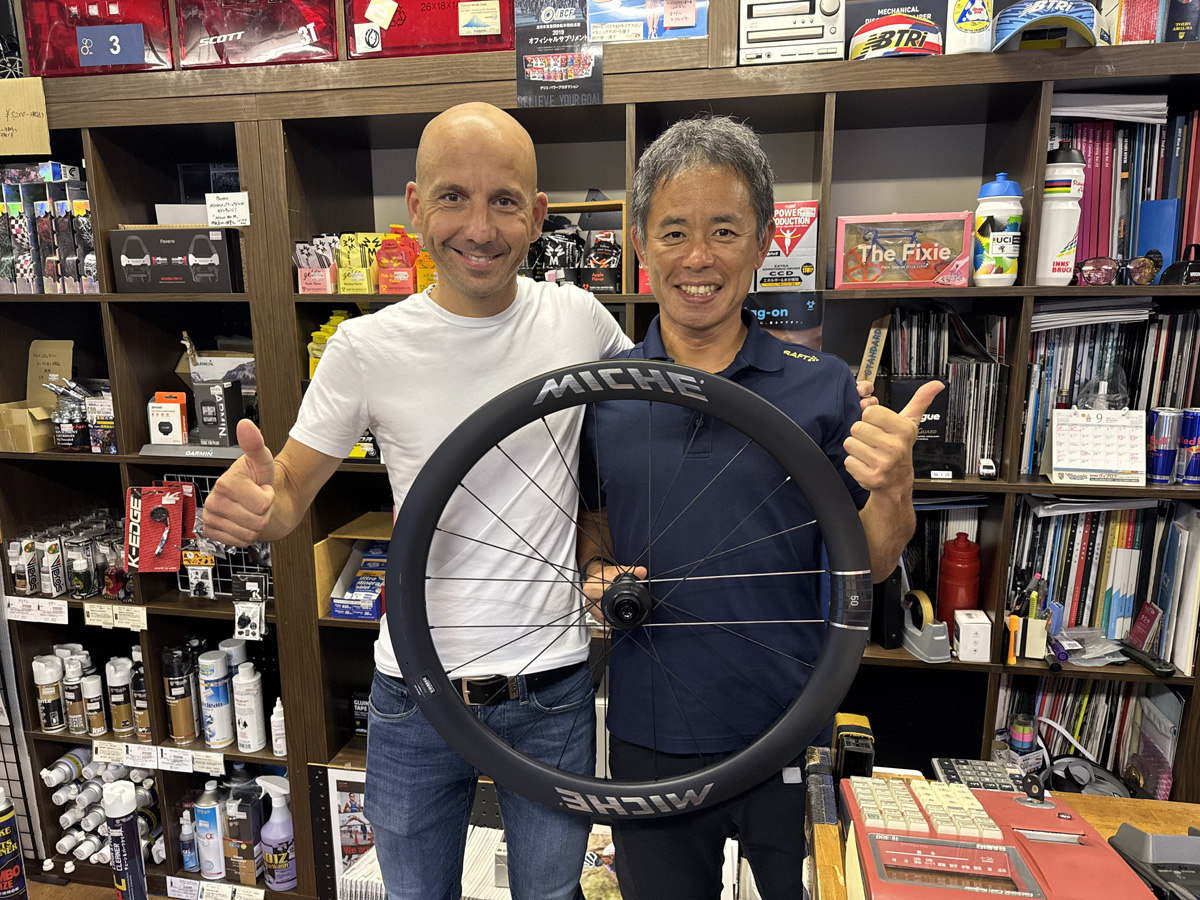 フリートバイク&トライアスロン、ミケのグレゴリーGMとトライアスロン日本代表メカニック相田店長がミケホイール談義