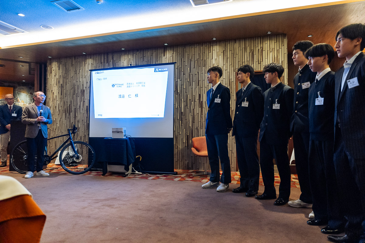 選手達を激励する渡邊仁理事長