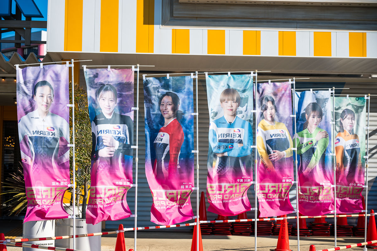 ガールズグランプリの出場者の幟がずらり