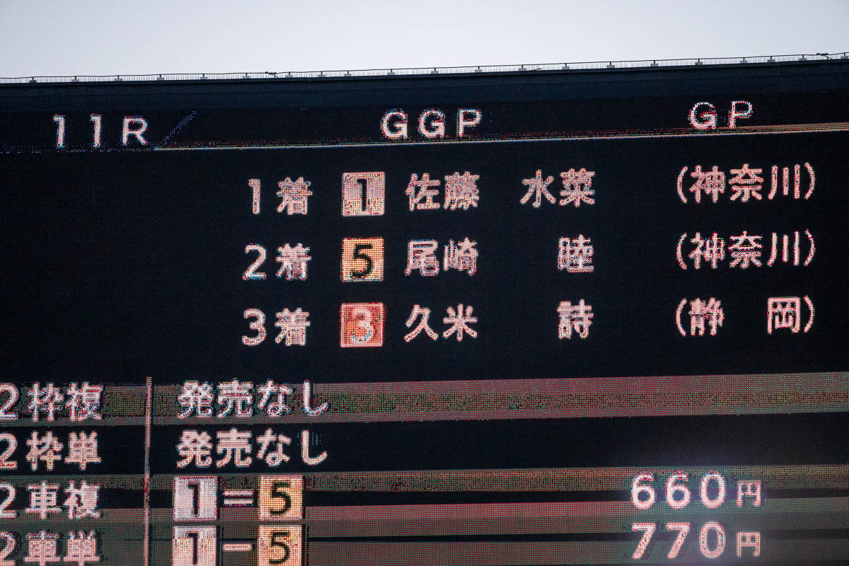 同県・神奈川の佐藤水菜と尾崎睦が1、2着。3着に久米詩(静岡)