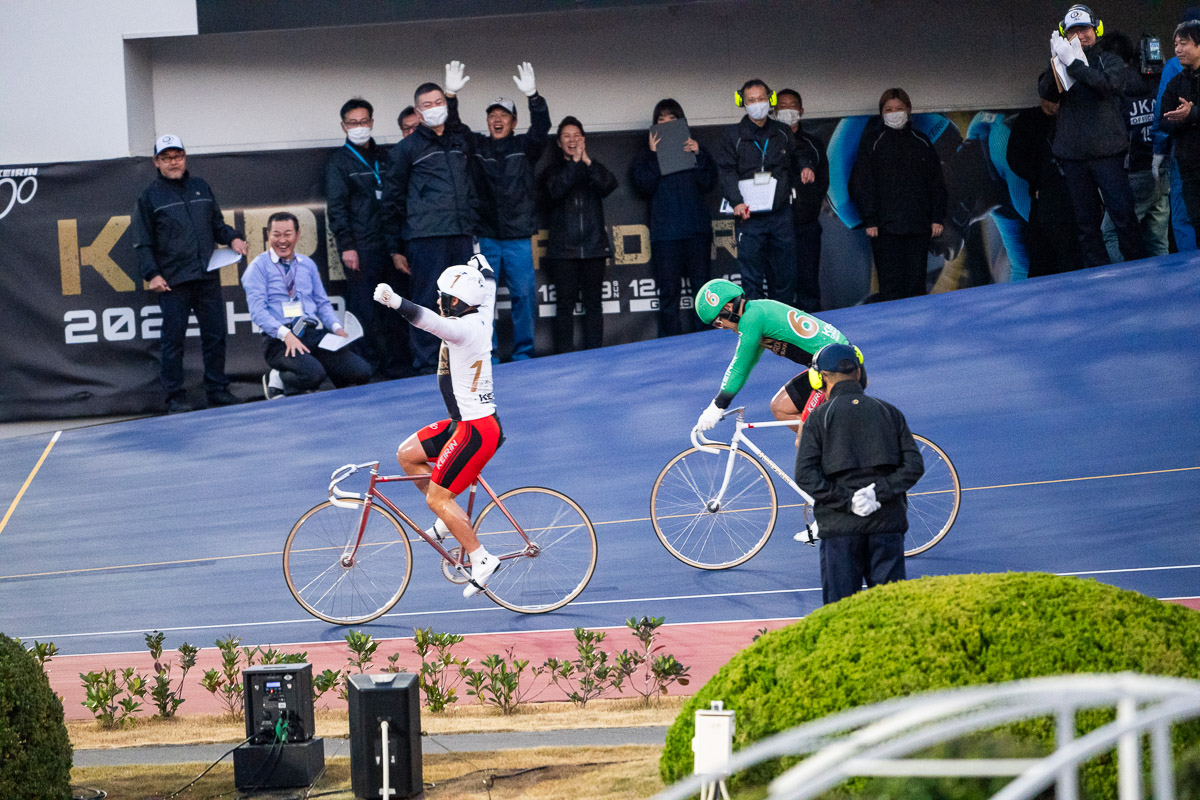 地元の競輪場スタッフ達が郡司浩平(神奈川)の勝利を喜ぶ