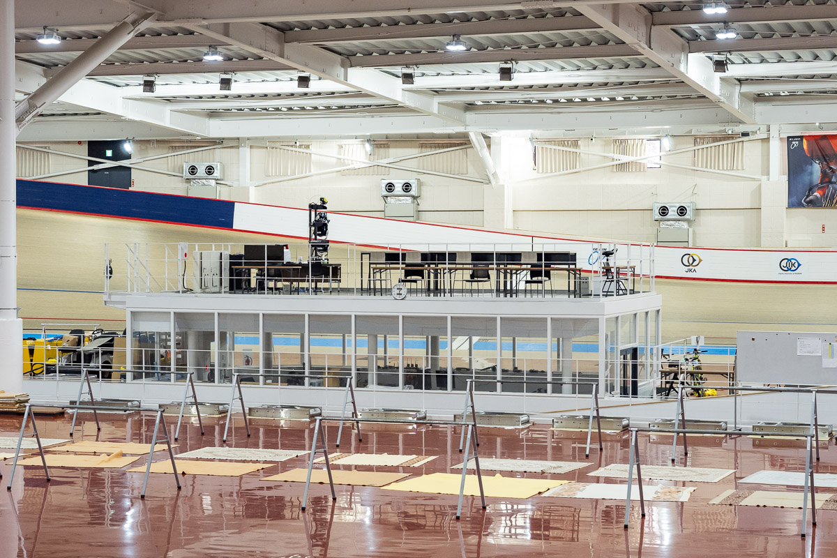 JKA250の中央には管制室が。ここからバンクを走る候補生たちを見渡せる