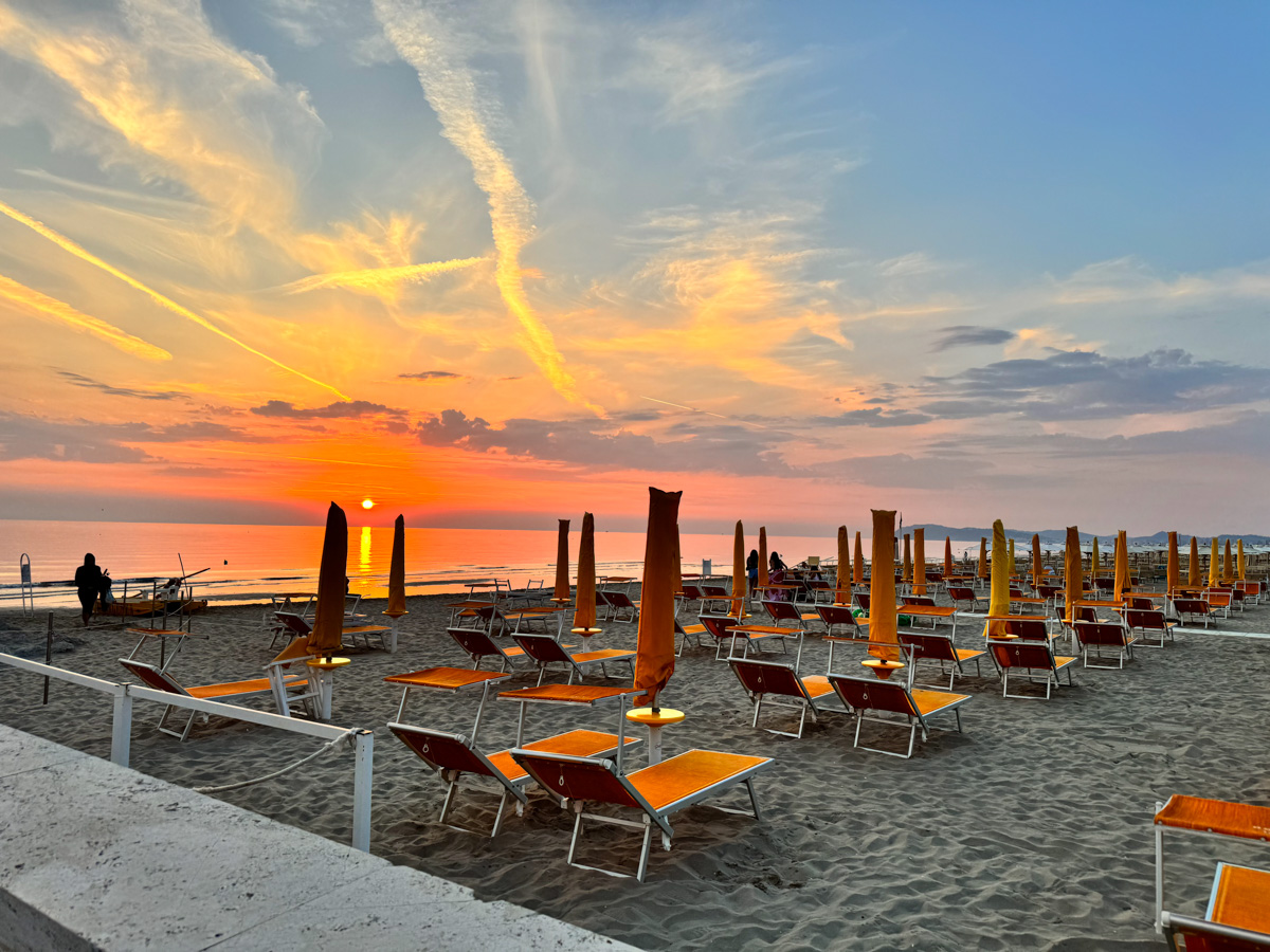 アドリア海のリゾート、リッチョーネのビーチの夕暮れ