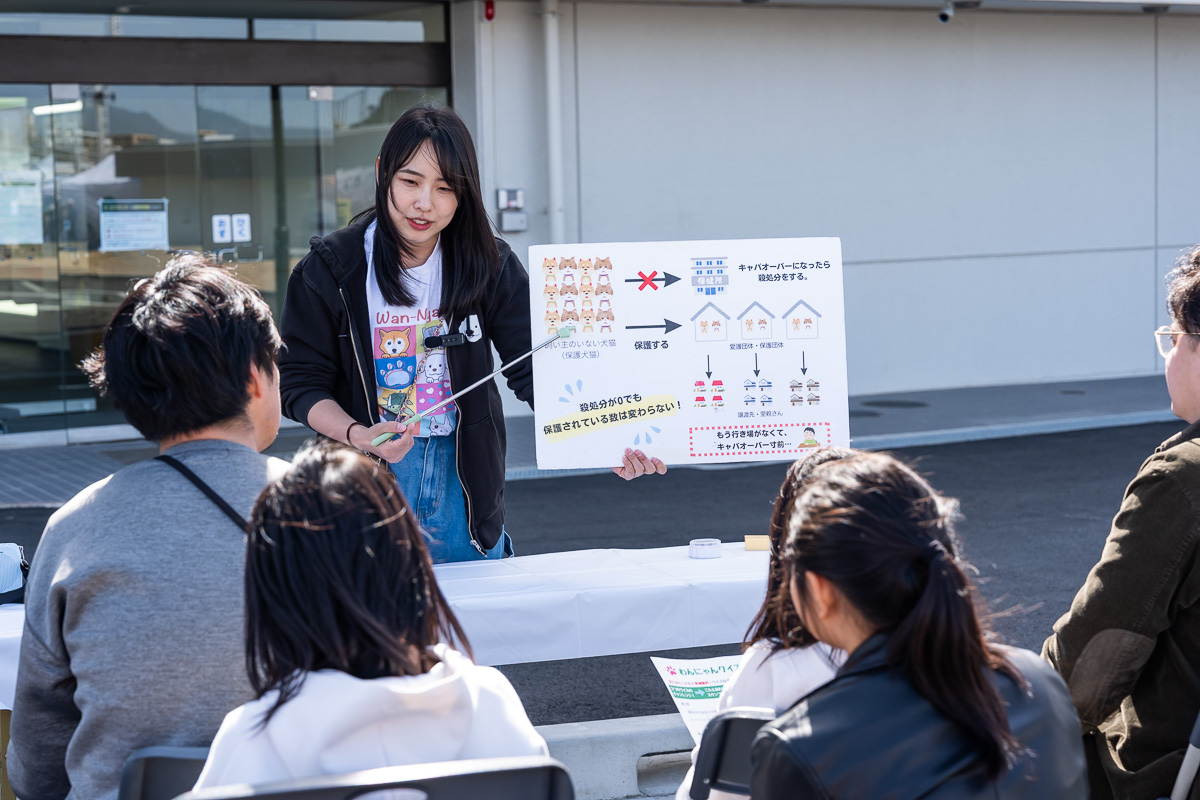 集まった人達に、保護犬・保護猫について大切な事を伝える高木真備さん