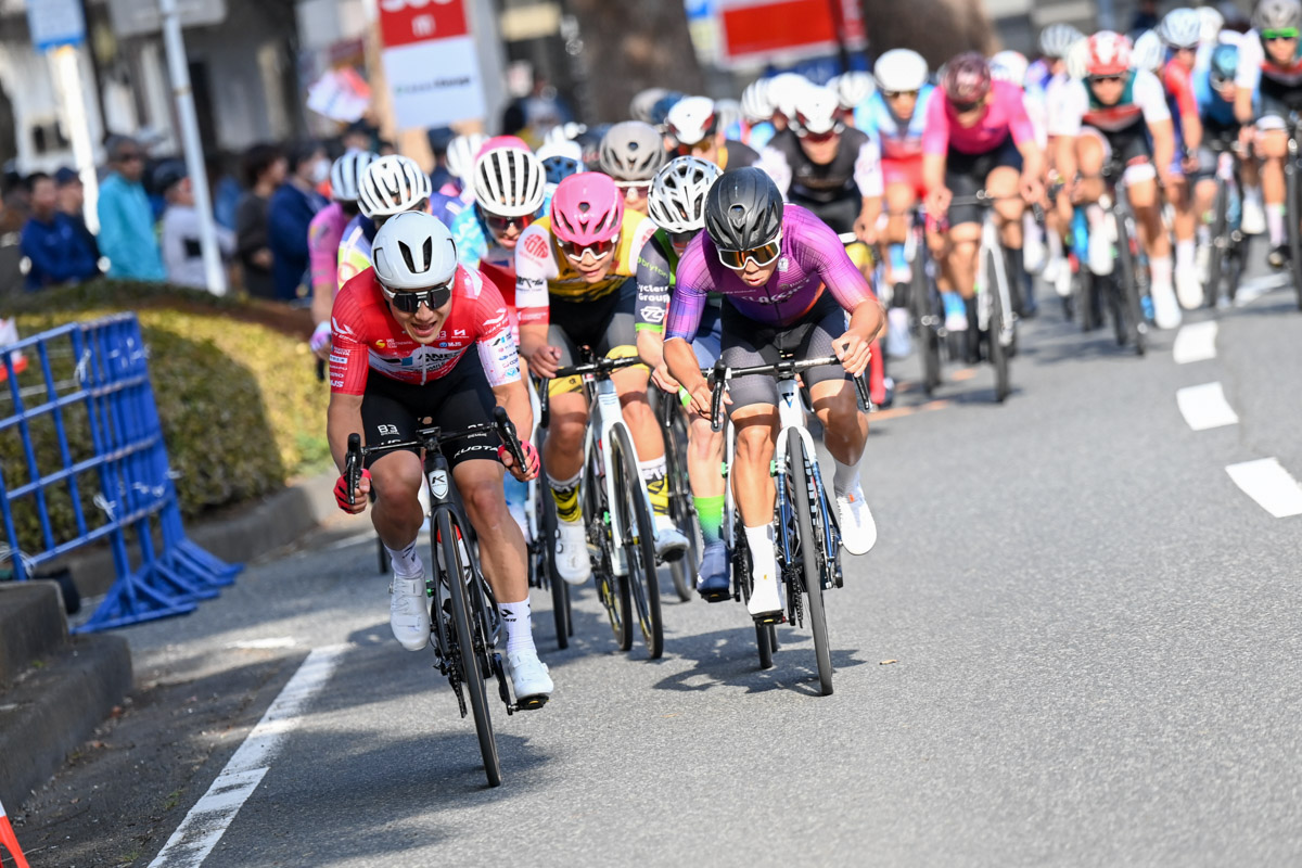 終盤、窪木一茂(TEAM UKYO)が集団先頭でペースを上げる