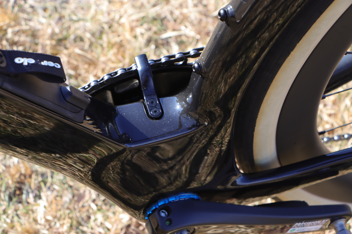 BB上部にはチェーン脱落防止小物が備わる