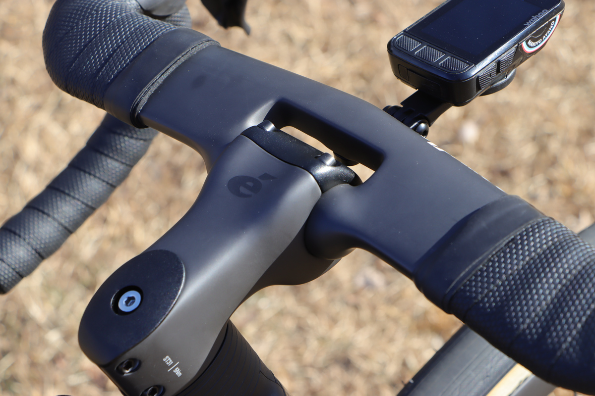 ノーマル形状のステムで翼状ハンドルをクランプする。ケーブルは内装される