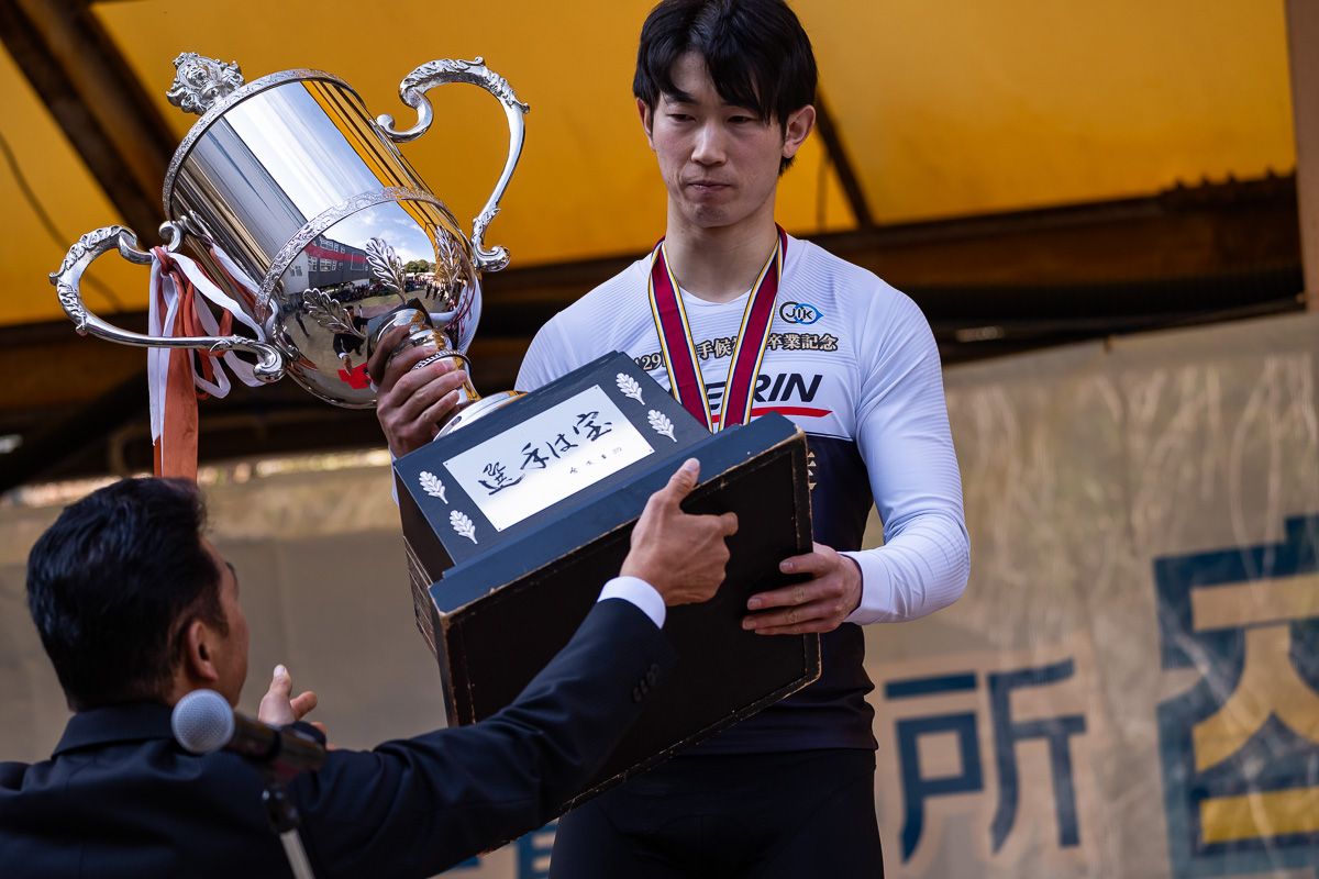 神山所長から倉茂杯を受け取る沢田桂太郎(大分)