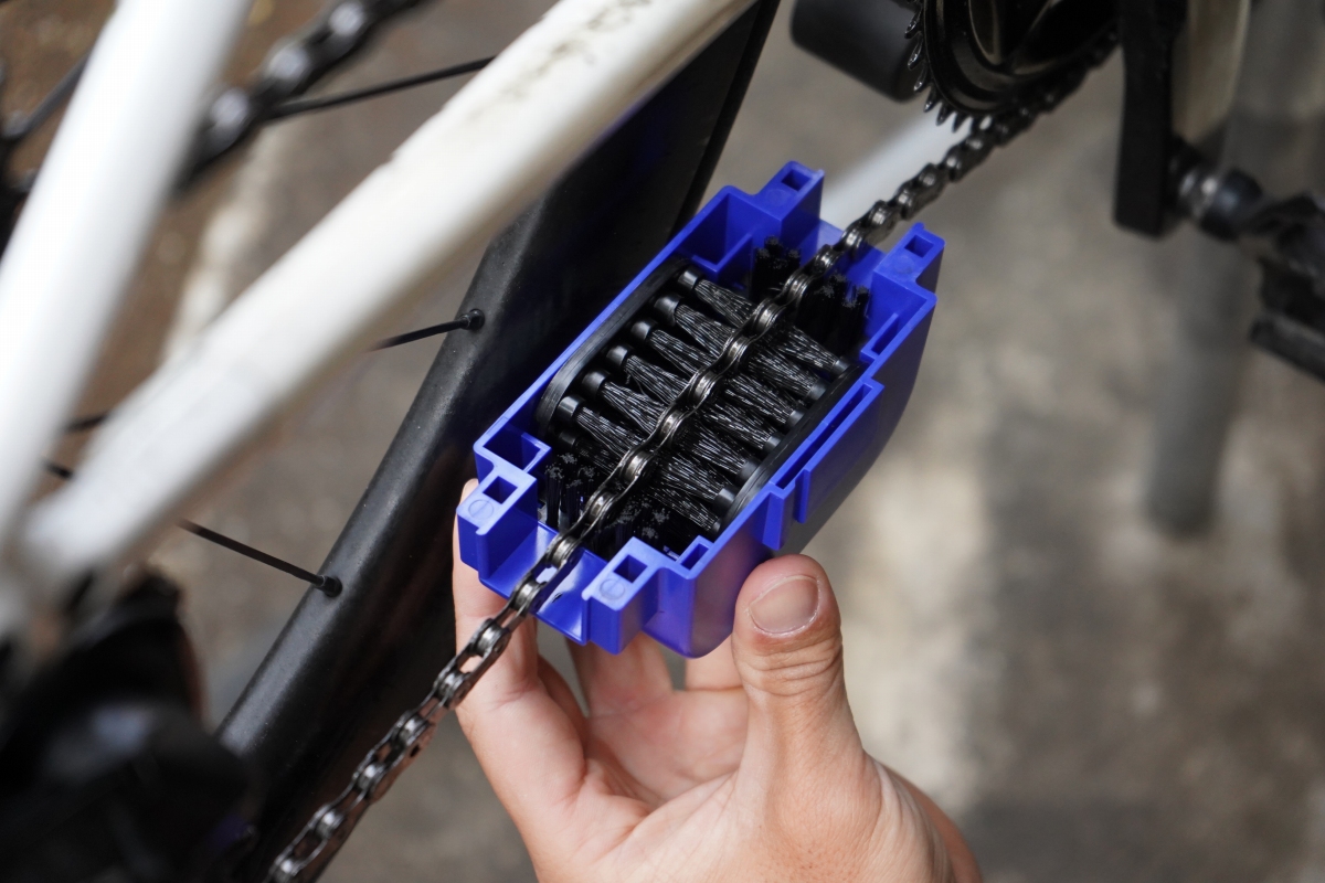 チェーンをアウタートップ状態にして、チェーンクリーニングマシンをセット