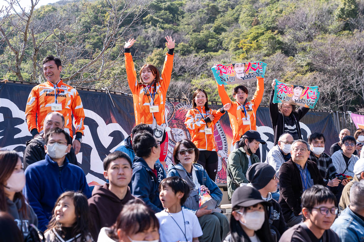 地元選手応援ブースでは、昨年のガールズグランプリに出場した山原さくら選手も参加して声援を送っていた