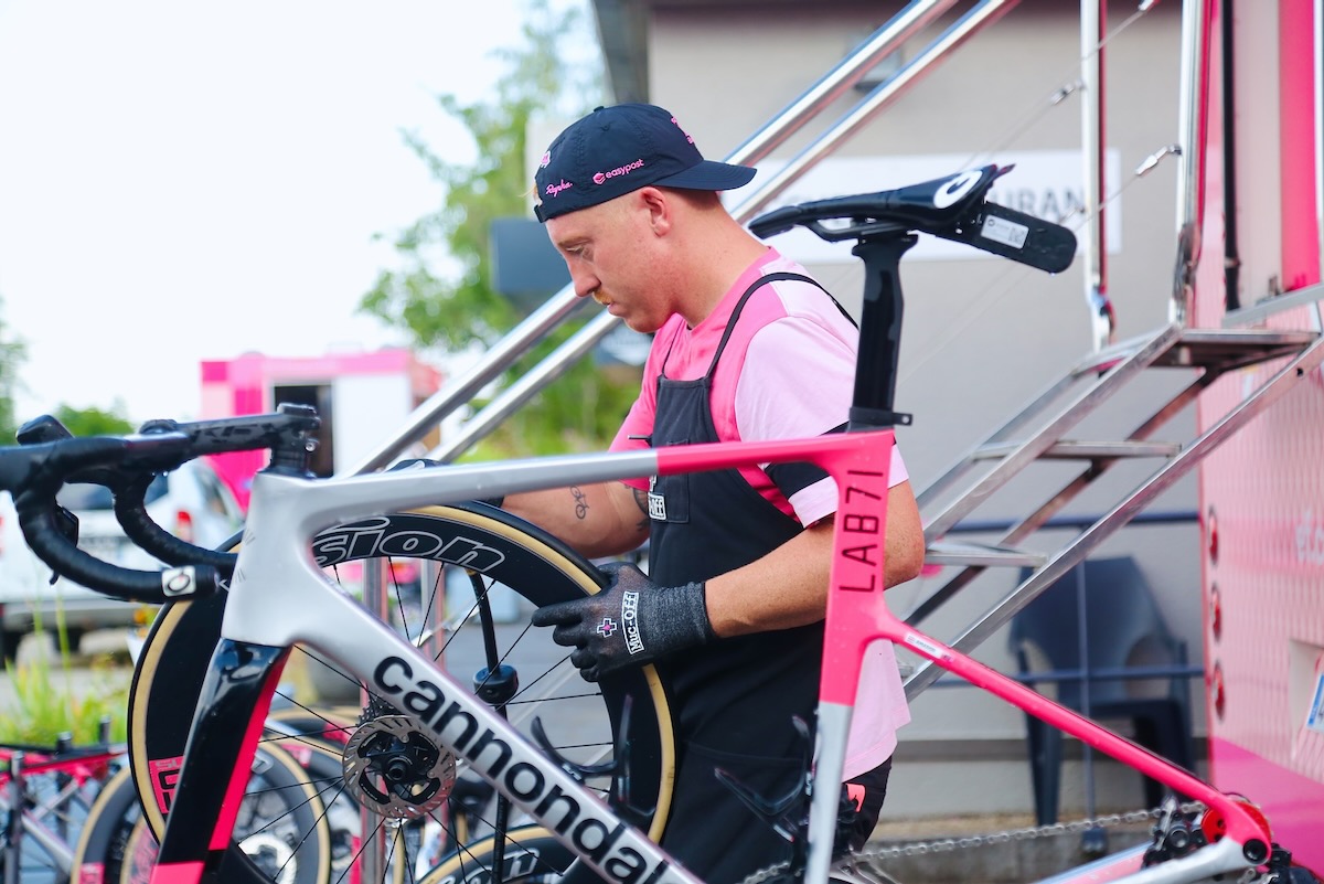 でも、一般ユーザーからすると、ケミカルって(特にラインナップが豊富であればあるほど)何をどう選んだらいいかよく分かりづらい。そこでシクロワイアード編集部は、ツール・ド・フランスの休息日にEFエデュケーション・イージーポストを訪ね、メカニックにマックオフ製品についてインタビューする機会を得た。
