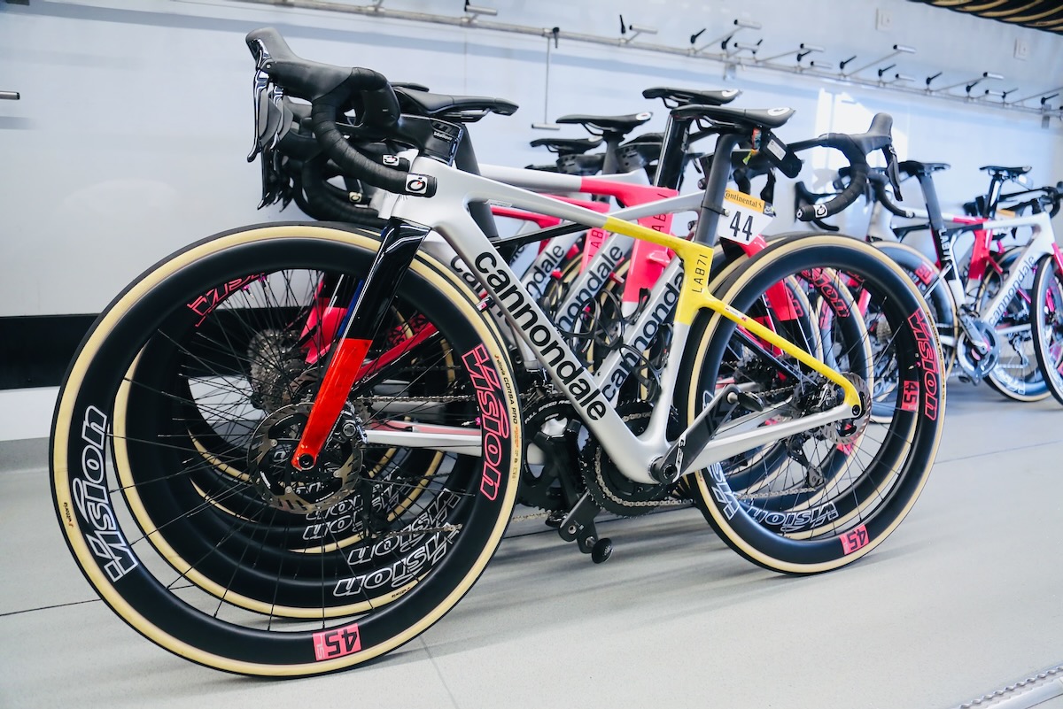 他にはチューブレスバルブがいい例だね。チームではマックオフのチューブレステープ(RIM TAPE ROLL)とシーラント(NO PUNCTURE HASSLE TUBELESS SEALANT)、ヴィットリアのタイヤインサートと併せてチューブレス運用しているけれど、インサートと組み合わせた時にバルブと接触してシーラントや空気が上手く入らないことが多かった。だから僕らはバルブのタイヤ内部に入る部分に溝を切ったんだ。その写真を取り、マックオフに送った。そうしたら彼らは2週間ぐらいで溝のついた今のバルブを開発してくれた。それは彼らにとっても僕らにとっても助けになる改善だった。