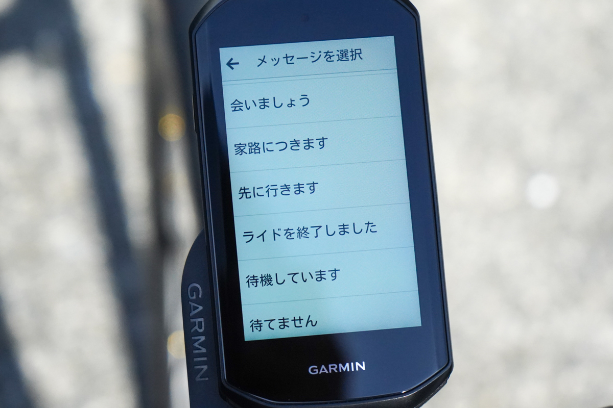 もちろんスマホでやり取りするのも一つの手だ。ただEdge 1050をバイクのすぐに手を伸ばせる場所に装備しているのであれば、バックポケットに収納しているスマホを取り出すよりスマートにメッセージを送信できる。そして、受信側としても、着信に気づく確率は圧倒的に高いだろう。このあたりの利便性はユーザーが体験して判断してみてほしいが、筆者としては確実にメリットがあると感じた。