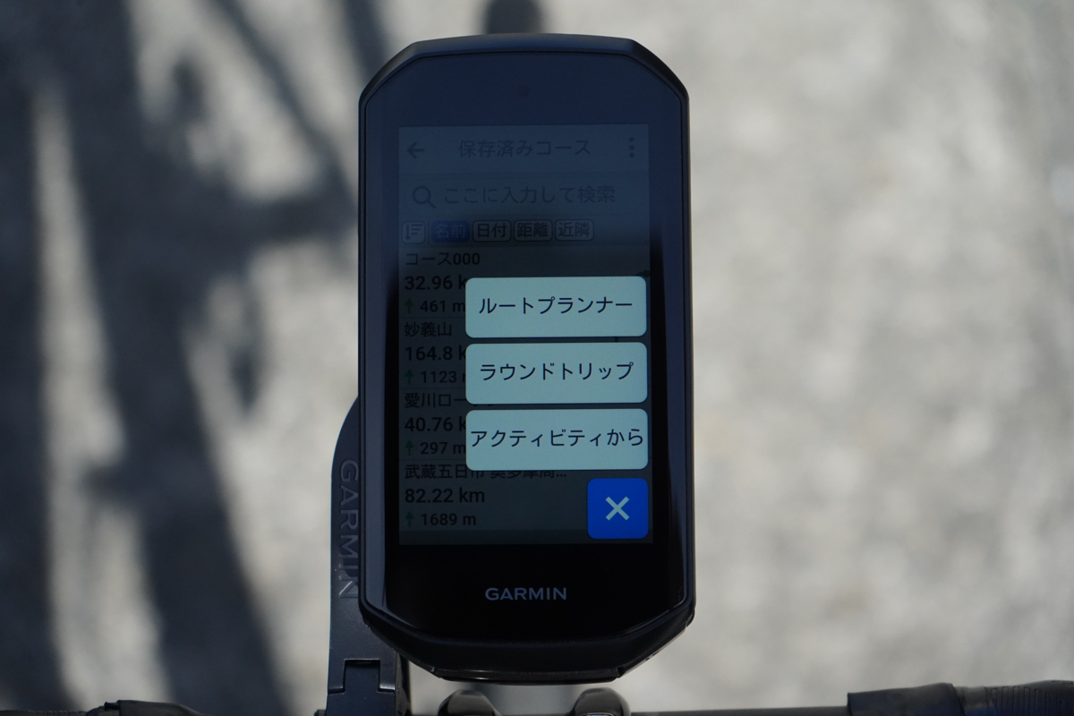 ルート作成は、地図上にポイントを設定し、ガーミンが自動的に導出してくれる「ルートプランナー」、開始地点と距離、進行方向を指定し最適なルートを自動的に作成してくれる「ラウンドトリップ」、過去のライド記録から作成する「アクティビティから」の3択で行える。