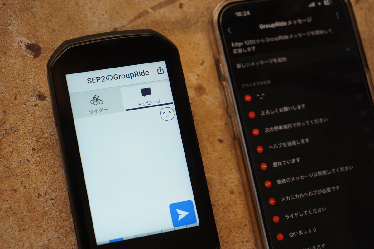 もちろん「頑張れ」「もう少し」などポジティブな応援メッセージも送信可能。離れてしまっても仲間の位置がわかるからこそかけられる言葉は力になるだろうし、安心感をもたらしてくれる。Edge 1050は声が届かない場所にいる仲間とも繋がれる、グループライド拡張デバイスと言っても過言ではない。