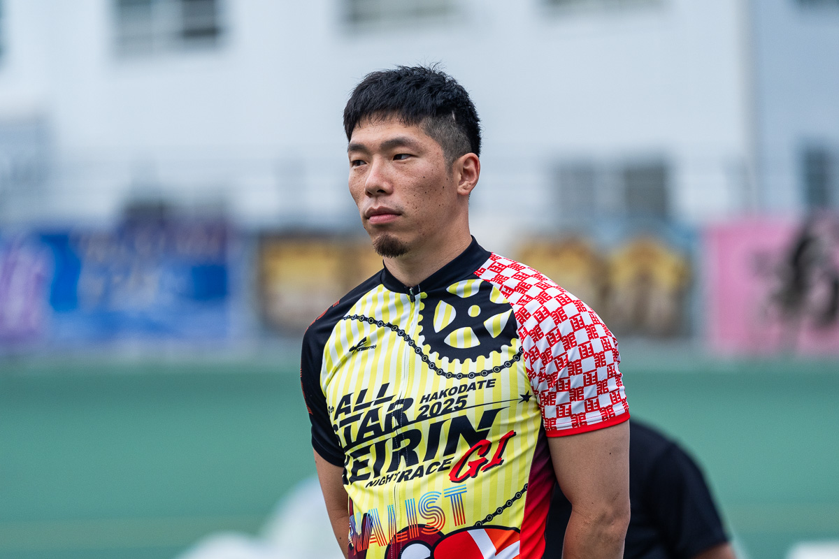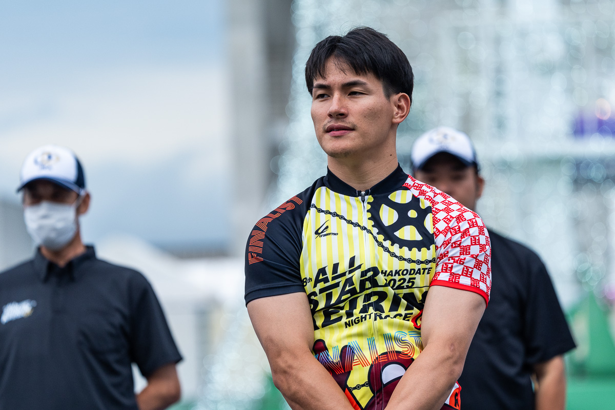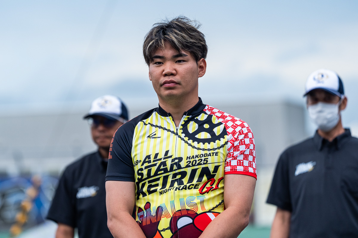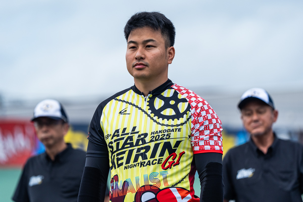 昼間のうちに天候が回復し、雲間から星が見えるほどになった函館。ナイター競輪発祥の地・函館での初GI・オールスター競輪の決勝に向け、選手達が発走機に向かう。福井から2人、大阪から2人を決勝に送り込んだ近畿勢は4車結束。9番車・脇本雄太(福井)、7番車・寺崎浩平(福井)、1番車・古性優作(大阪)、4番車・南修二(大阪)と並び、盤石の態勢を築いた。その近畿の中でも優勝候補と目されたのは寺崎。強烈な先行力を誇る脇本の番手に入り、後ろには横の動きにも強い古性と南が控えたことで、GI初優勝はここと推された。