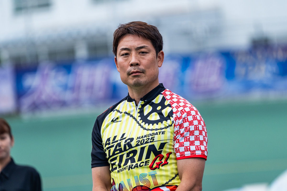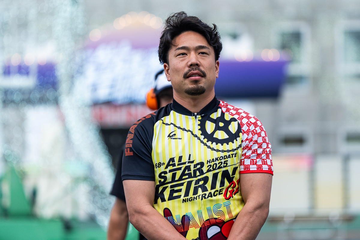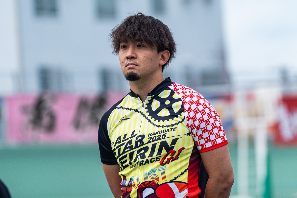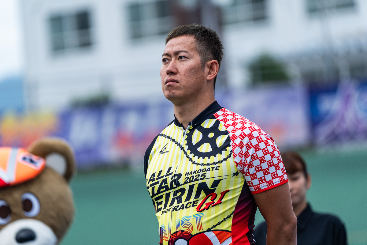 昼間のうちに天候が回復し、雲間から星が見えるほどになった函館。ナイター競輪発祥の地・函館での初GI・オールスター競輪の決勝に向け、選手達が発走機に向かう。福井から2人、大阪から2人を決勝に送り込んだ近畿勢は4車結束。9番車・脇本雄太(福井)、7番車・寺崎浩平(福井)、1番車・古性優作(大阪)、4番車・南修二(大阪)と並び、盤石の態勢を築いた。その近畿の中でも優勝候補と目されたのは寺崎。強烈な先行力を誇る脇本の番手に入り、後ろには横の動きにも強い古性と南が控えたことで、GI初優勝はここと推された。