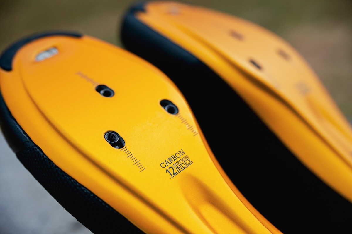 加えてクリートの位置合わせがしやすいガイドプリントに、反射素材付きのヒールカップと細かい部分にも抜かりはない。アンダー4万円で最高性能が手に入る、ホビーレーサーにとって非常に魅力的な1足だ。また、ブラックバージョンのアウトソールはゴールドに彩られ、ユニークで高級感あるルックスを獲得している。