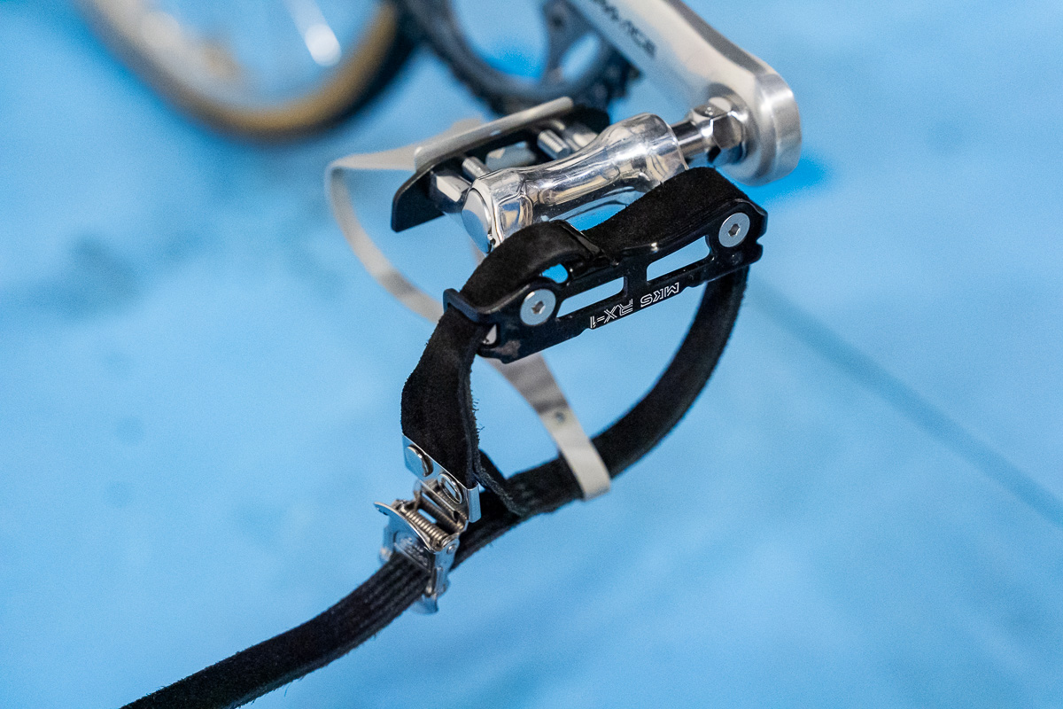 ギアは49✕13Tで倍数3.77。53✕14T(3.79)も4、5年使っていたようだが、今お世話になっている方に「これが合っているだろう」と言われて使ってみたら「なんで今までこっちにしてなかったんだろう」と発見があったと言う。クランク長は167.5mm。デビュー当時は165mmで、そこから今の長さにして随分経つようだ。