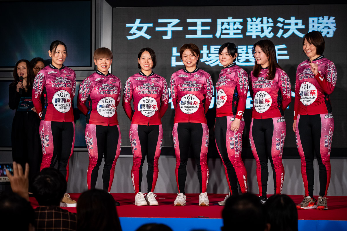 競輪祭女子王座戦の選手紹介に揃った決勝進出選手達 photo: Yuichiro Hosoda