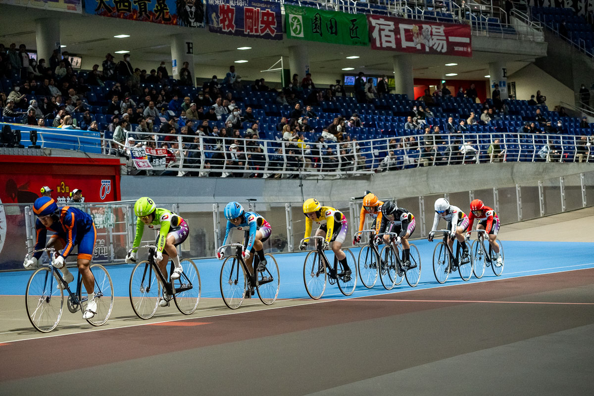 熱心なファンが詰めかけた金曜夜の小倉、危なげない走りで2連勝して1番車に収まったのは、10月に世界選手権女子ケイリンを2連覇した佐藤水菜。当開催は年間グランドスラムという新たな記録に王手をかけて臨むレースとなった。同じく2連勝で勝ち上がったのは、梅川風子(東京)。この大会の初代女王が2度目の戴冠を目指して2番車に。