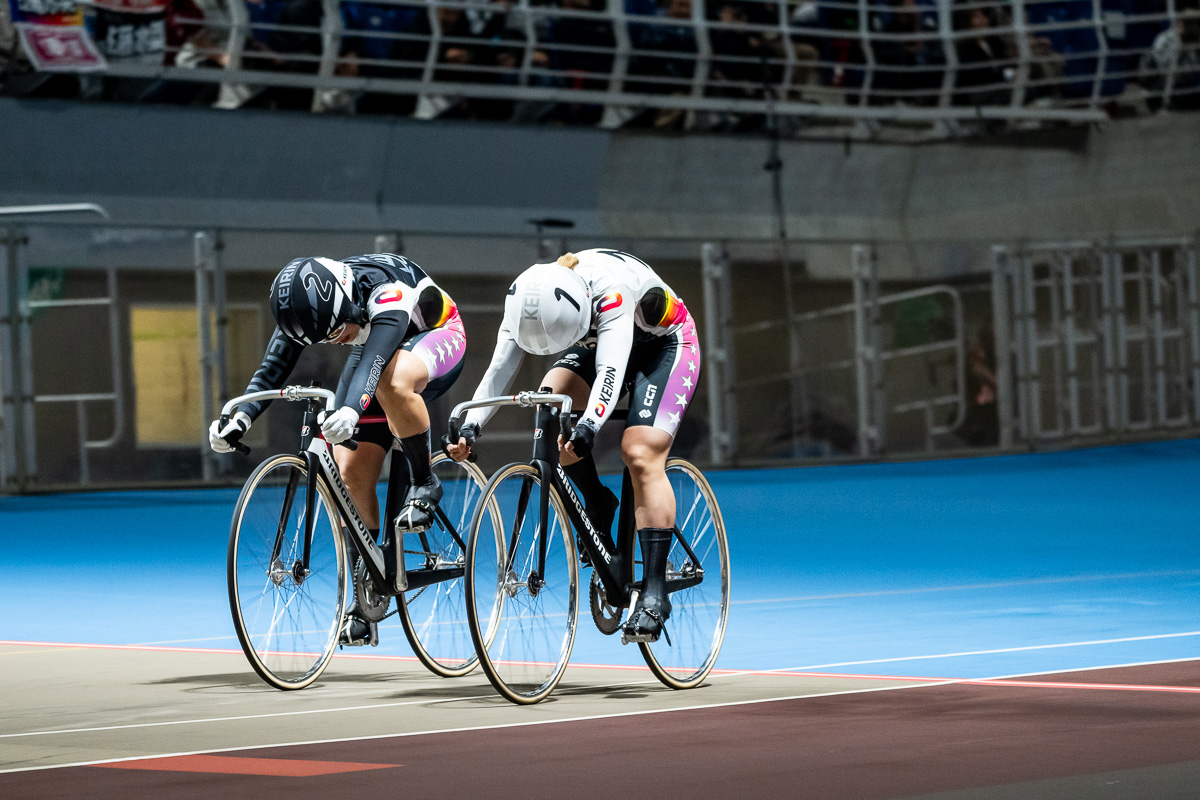 坂口楓華(愛知)と那須萌美(宮崎)が後ろの出方を伺いながら赤板周回へと差し掛かる photo: Yuichiro Hosoda