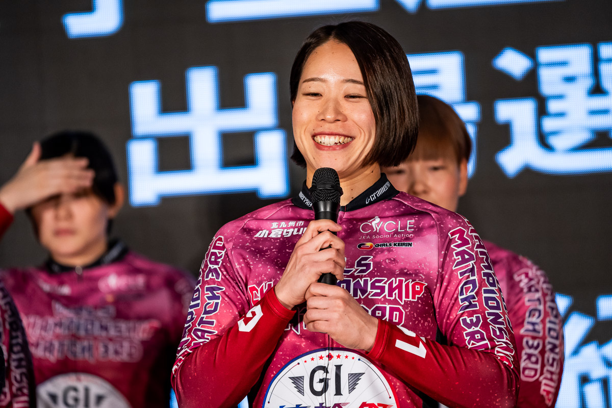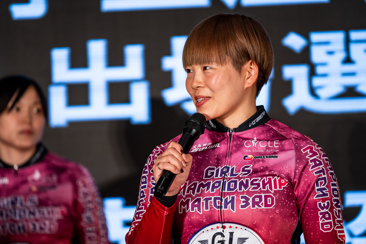 最近負ける時の敗因を「内に詰まること」と評した仲澤春香(神奈川)は5番車。準決勝で同様の厳しい展開も3着。現ナショナルチームの先輩・佐藤を負かしてGI初優勝を掴み取れるか、期待がかかった。仲澤と同期の大浦彩瑛(神奈川)は、2回目のGI出場で決勝の舞台へ、3番車。梅川に次ぐ準決勝2着で4番車の那須萌美(宮崎)は、2年前のパールカップ以来の決勝となった。