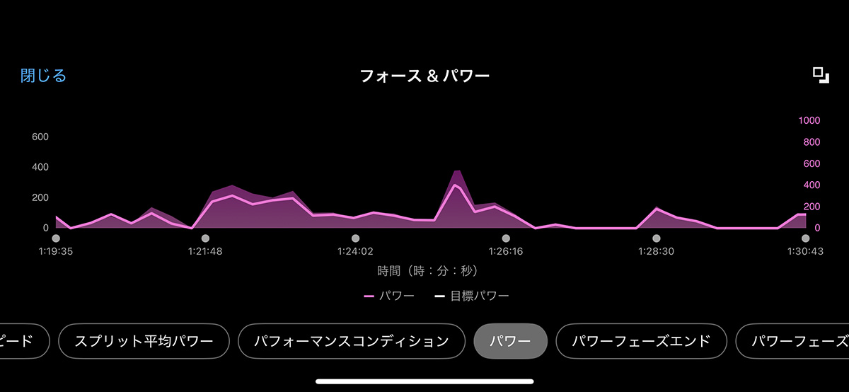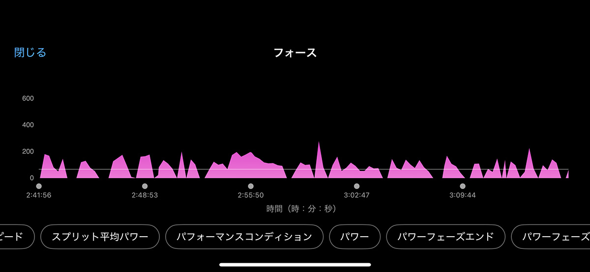 フォースデータの価値は、自分のパワー出力の特性を理解できることにある。パワーはフォースとケイデンスのどちらを上げることによっても数値が向上するが、やがて一方がボトルネックとなる。