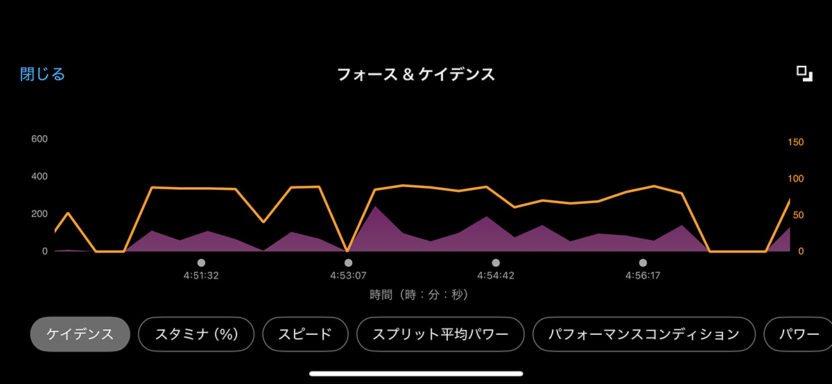またケイデンスについて竹谷さんは「回転を上げる能力や保つ能力は、キャリアを積むと、極端に落ちることはありません。もし、ケイデンスが変わらないのであれば、フォースに何らかの課題があると考えることができます。それが数値として表現されることで、問題を特定し、トレーニング指針の検討につながります」という。