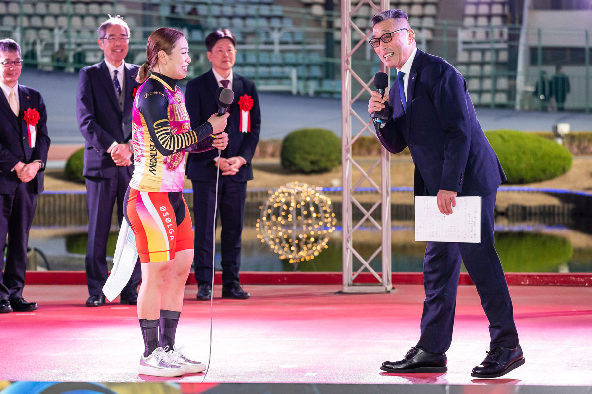 夏の女子オールスター競輪で通算でのグランドスラム、秋には世界選手権女子ケイリン2連覇、競輪祭女子王座戦で年間グランドスラム、冬のガールズGPで年間グランプリスラム達成と、今年競技と競輪の両方で頂点を極めた佐藤。レース中は「懸命に踏み込んでほとんど覚えていない」と話し、記者に展開を逆質問するほどの集中ぶりを見せた。