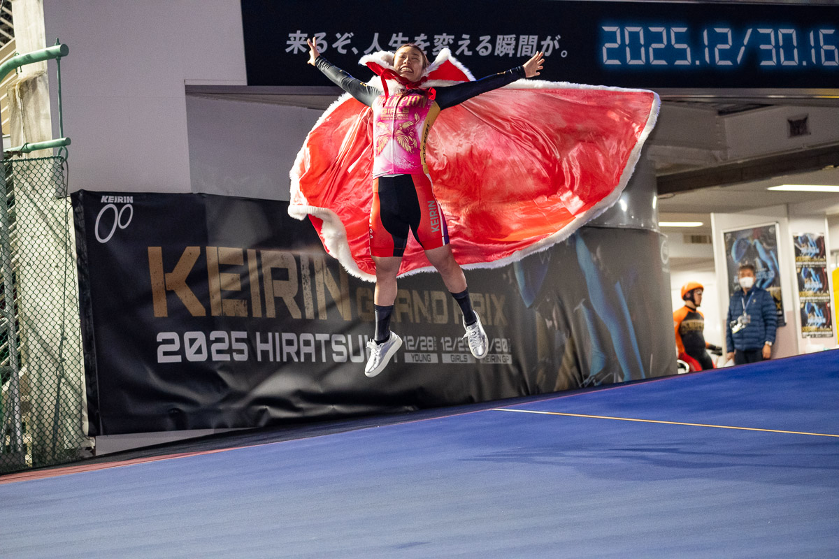 ゴール後すぐに右手でガッツポーズを作り、勝利を喜んだ中石。「すごい応援の中、こんな緊張感のあった大会に出れたのは初めてだったので、1着を取れて嬉しい。いい経験になった」と表彰式で語り、来年に向けては「今年学んだことをしっかりとやって、ミスをしないいいレースを心がけていきたい」と抱負も。ナショナルチームでの活躍を誓うとともに、競輪のグレードレースでも期待に応える走りを目指す。