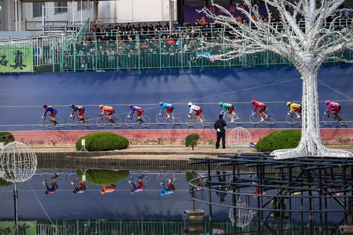 さあ、グランプリのレポートに移ろう。12月19日の共同記者会見の時には決まっていなかった各車の並びだが、レース前々日の28日の会見で明らかになった。近畿は4車が結束し、阿部拓真(宮城)が単騎を選択して関東は2車となった。1番車は地元から唯一出場の郡司浩平(神奈川)。今年は特別競輪の優勝こそ手が届かなかったものの、地域各場の開設記念GIIIを6勝、年間では41もの勝利を重ねてここに車を並べた。