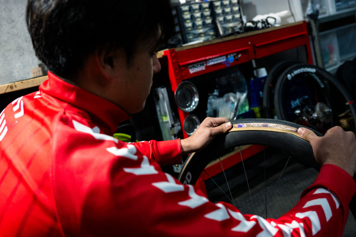 AGXEROはしなやかになり、より嵌めやすくなったと、ブリッツェンの市原メカニック。選手、メカ共にそのしなやかさを高く評価する。 photo:Naoki Yasuoka