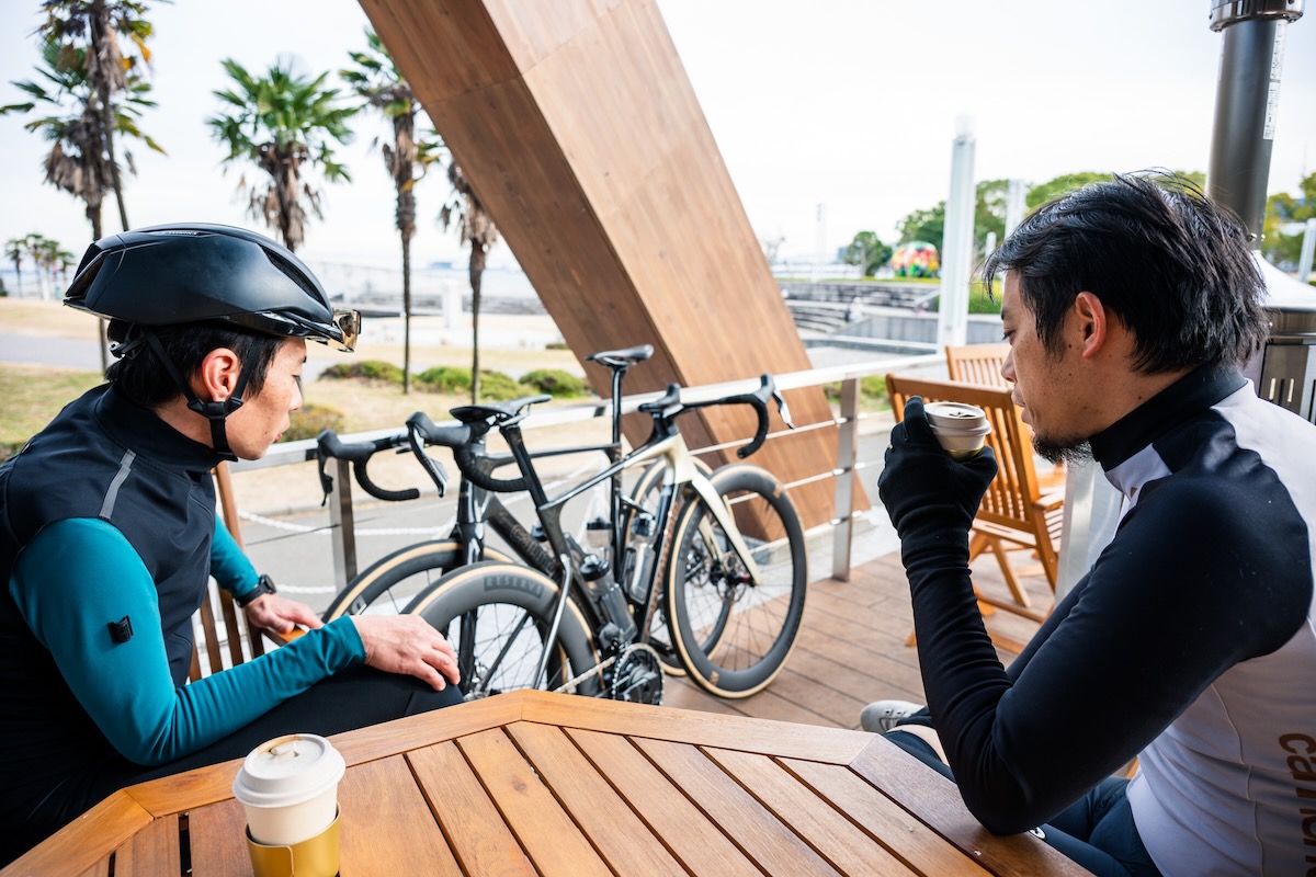 「とにかく軽い。サイコーです。僕が乗った56サイズで、ペダルもサイコンもつけた状態で6.8kgジャスト。それに、この反応性。山に行って全開でもがきに行きたくなりますよね」そう語る高木さんの視線は、単なる重量の数字はもちろん、バイクが持つ「キレ」の質に向けられていた。