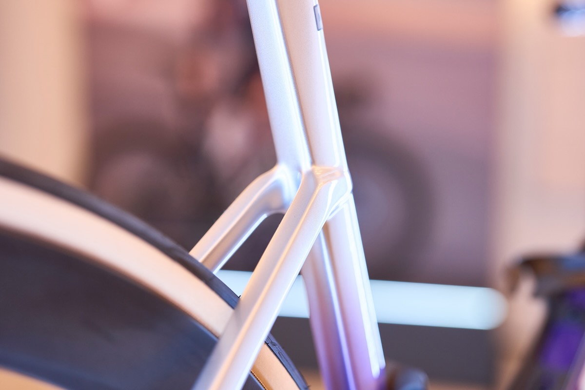 そしてフレームの設計も、スペックインするハンドルやホイールに最適化するように修正が加えられたという。ヘッドチューブやダウンチューブのシェイプがそれだ。フレームが先にあって、ハンドルやホイールが次にあるのではなく、もはやパーツに合わせてフレームを設計する時代とも言える。