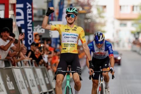 舗装路の登りで竹之内を引き離しにかかる山本和弘(弱虫ペダルシクロクロスチーム) photo:Kei Tsuji/nobeyamacyclocross.cc「パンクした時は焦ったものの、出来るだけタイムを失わないようにそのまま走ってピットでバイクを交換。リスクを負うことなくすぐにペースを取り戻した」と言うベルトリーニが独走勝利。マクドナルドとのタイム差は最終的に48秒まで広がった。